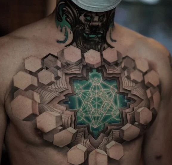 Elaborate Three Dimensional Tattoos That Create The Illusion Of Multiple Levels Beneath The Skin